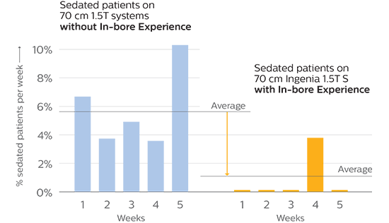 * Compared to the average of the other 5 Philips MR scanners without Ambient and In-bore Experience. Results from case studies are not predictive of results in other cases. Results in other cases may vary.