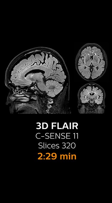 The most frequently used brain MRI examination at KNC included approximately 15 minutes of scanning time, and was quite comprehensive with fairly short scan times. When Compressed SENSE became available, its great impact on the brain exam quickly became clear.